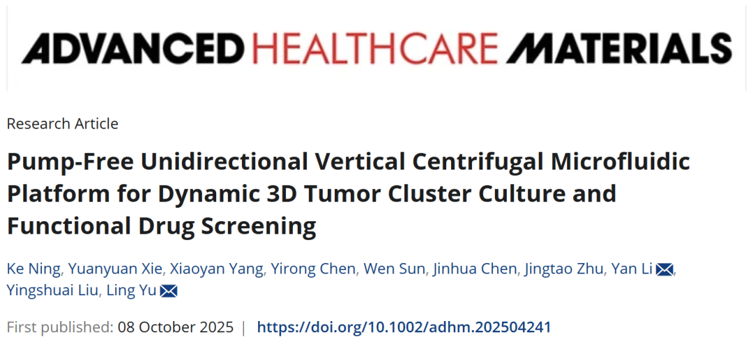 近日,国药集团中国生物动物保健板块企业国药集团动物保健股份有限公司(简称“国药动保”)类器官芯片研究团队在国际权威期刊《先进医用材料》(Advanced Healthcare Materials,五年平均影响因子10.8)发表重要研究成果,题为《Pump-Free Unidirectional Vertical Centrifugal Microfluidic Platform for Dynamic 3D Tumor Cluster Culture and Functional Drug Screening》。